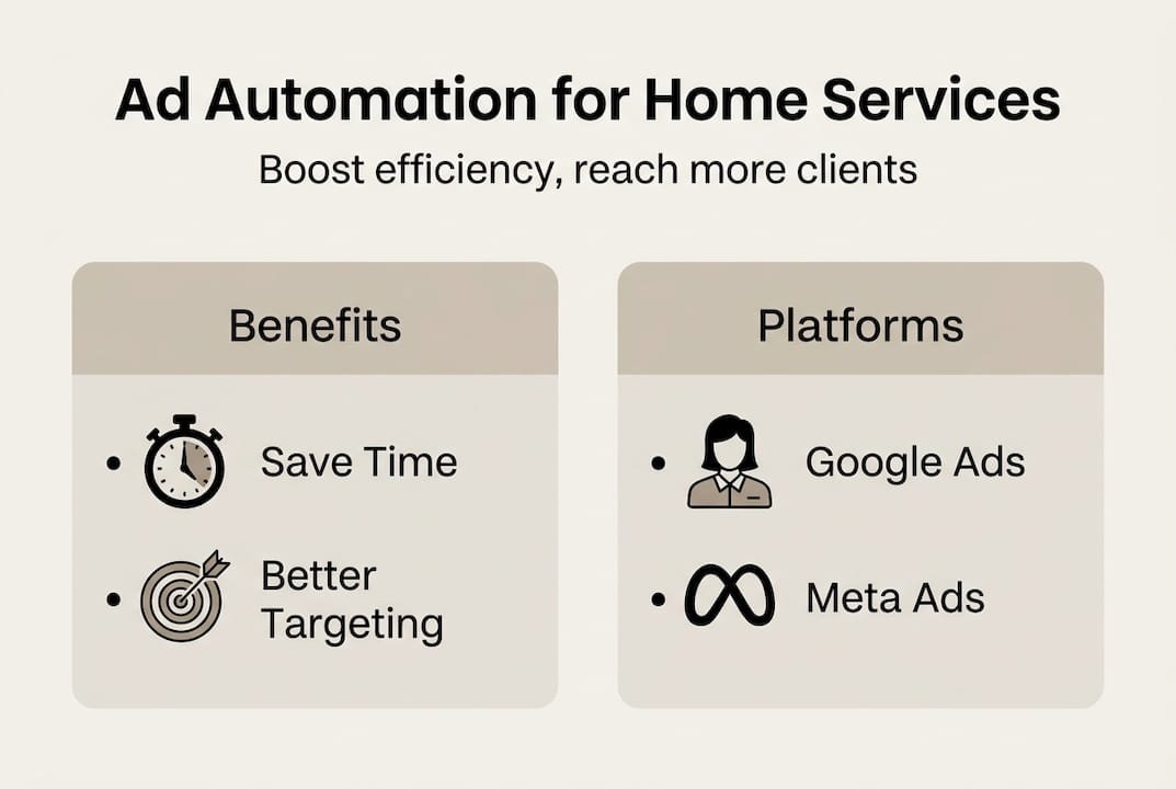 Running ads for your HVAC or construction business can feel like spinning plates. You're juggling budgets, tweaking copy, guessing which audience to target, and wondering why leads dry up without warning. Most business owners in the trades spend hours managing campaigns manually, only to get inconsistent results. Advertising automation changes that equation entirely. This guide breaks down what automation really means, how it works for home service businesses, which platforms make the most sense, and how to get started without blowing your budget or your sanity.