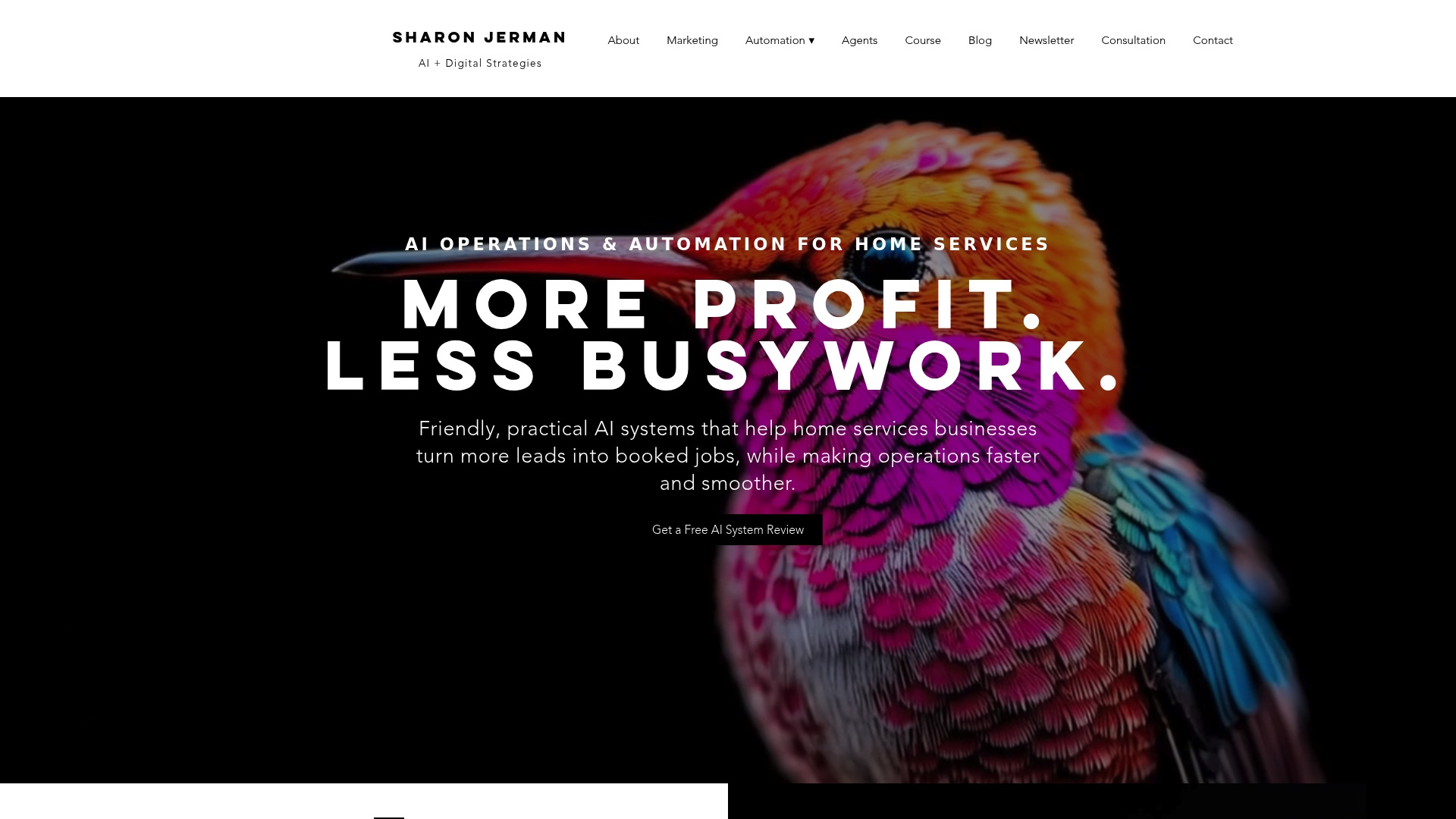 Sharon Jerman specializes in AI strategy and chatbot consulting for home service businesses in construction, landscaping, HVAC, and electrical. From custom chatbot builds to voice AI and full automation strategies, the goal is simple: help you capture more leads and serve your customers better without adding more work to your plate. If you're serious about upgrading your customer experience, book a free consultation and get a clear plan built around your business.